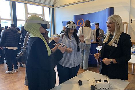Kurze, informative Vorträge wechselten sich mit einem Gallery Walk ab: Hier konnten sich die Schülerinnen und Schüler über die einzelnen Berufe genau informieren und im Rollenspiel eine Reanimation durchführen. Durch die Nutzung von VR-Brillen war es überdies möglich, ein virtuelles Krankenhaus zu betreten und sich in allen möglichen Räumen und Arbeitsplätzen umzusehen. Die Schülerinnen und Schüler hatten außerdem die Möglichkeit, ihre eigenen Bewerbungsunterlagen abzugeben, um eine Ausbildung oder ein Praktikum im Elisabeth-Krankenhaus zu absolvieren.