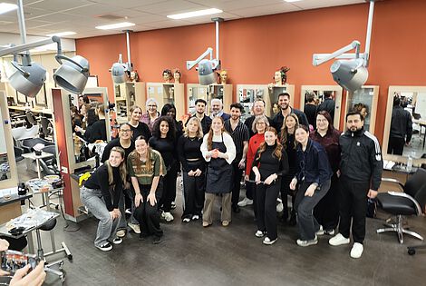 Vom 20.01.2026 bis zum 24.01.2026 nahmen sieben Auszubildende der Friseurabteilung an einem internationalen Austausch mit der Partnerschule Gilde Opleidingen in Venlo teil. Gemeinsam mit sieben niederländischen Schülerinnen arbeiteten sie in binationalen Teams an Projekten zu Haarschnitt und Farbgestaltung und sammelten praktische Erfahrungen bei der Bedienung von Kundinnen und Kunden im schuleigenen Salon.